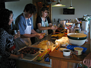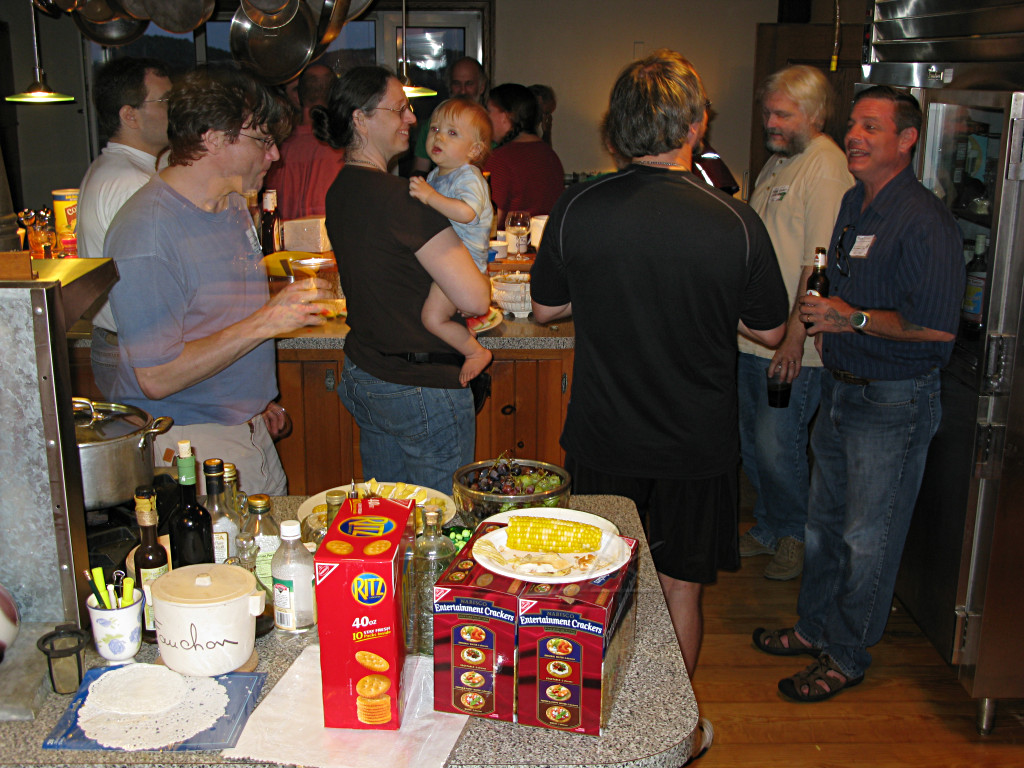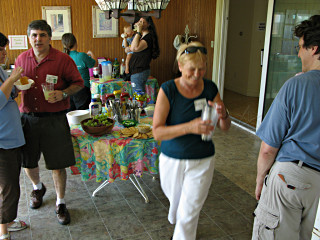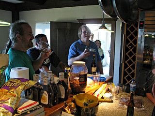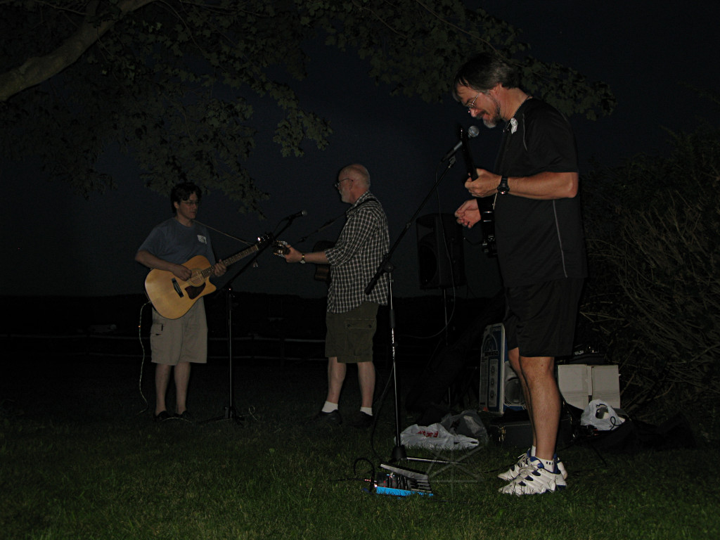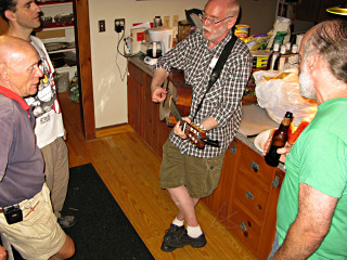 | Music was made, both outside [braving the mosquitoes!] and inside [which soon devolved into old standbys such as "Drunken Sailor" and "Tie Me Kangaroo Down"...] | |