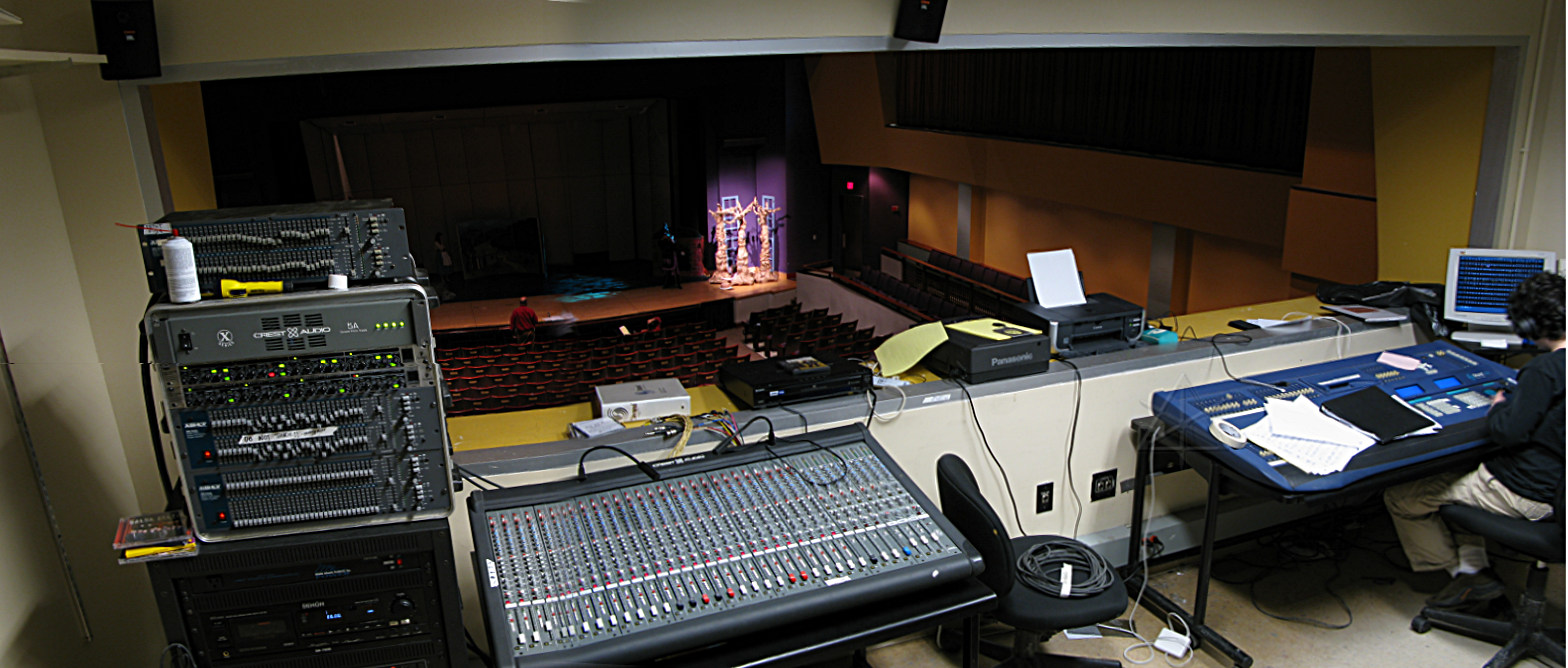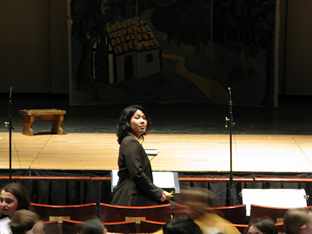 | The director, now wondering how she was going to tell lighting to flash the house and start the show without having an intercom. |