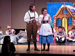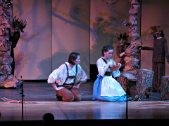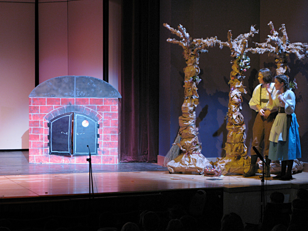 | Hansel is imprisoned, and Gretel is trapped in the witch's thrall. |