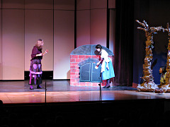 At this critical moment, my memory card suddenly hit full. Oops. As I stood there frantically deleting a bunch of old pictures to make room, a miracle happens, the simultaneous equations are solved, a loophole is found in the laws of physics, and the witch winds up tumbling into her own nicely-preheated oven with a little help from our heroes. Screeeeeeaaaamm!! That'll teach me to head off to a possibly picture-heavy event without a ton of free storage space available. On the way home from the show, I stopped off and bought another 2 gig card, which I'd been meaning to do for a while anyways.  |