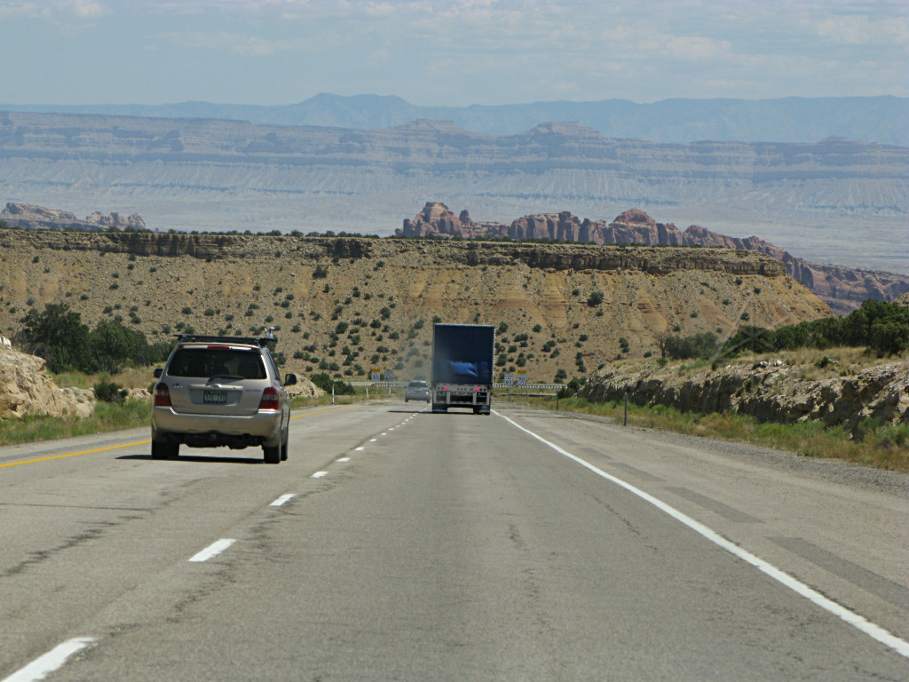 I eventually crossed into Colorado, and soon made my way through Grand Junction with a short lunch stop. The shapes of the rocks and hills gradually changed again, still remaining quite interesting. |
