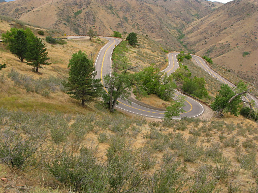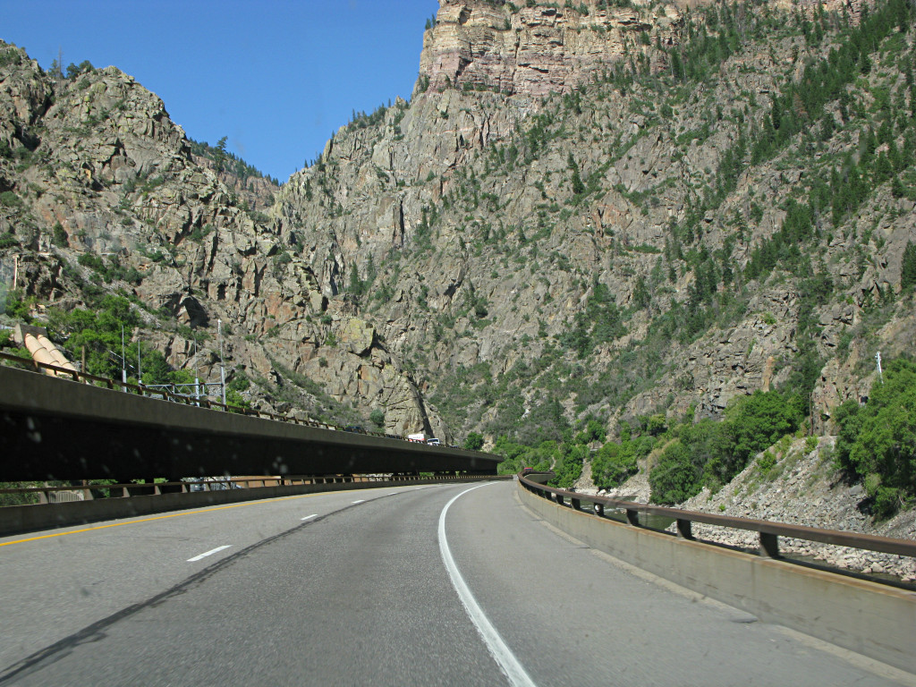 That was gone again by the time I crested the pass, and a few miles and a dip back to 8000 feet later came Loveland Pass that tops 11,000 feet and I had to play the same game all over again. Fortunately I had caught up with my onion-crate-haulin' buddy again and let him lead the charge [or lack thereof in my case] up most of that until I passed him or lost him, I don't remember which, somewhere before the Eisenhower Tunnel at the top. The worst part of it was keeping up the busy rear-guard action. Even the RV drivers with more modest hormonal needs who were content to climb at a slower rate would still get way too *close* while doing it, and most of the time instead of just backing off and maintaining a gap would respond to my entreaties by moving to the left lane and then have to labor hard ahead of the endless oncoming crush of the overpowered and overprivileged to get past me v-e-r-y slowly. Why bother, I thought, the uphill isn't infinite and has to end sometime. Aren't these people supposedly on *vacation* and taking it easy?? | |