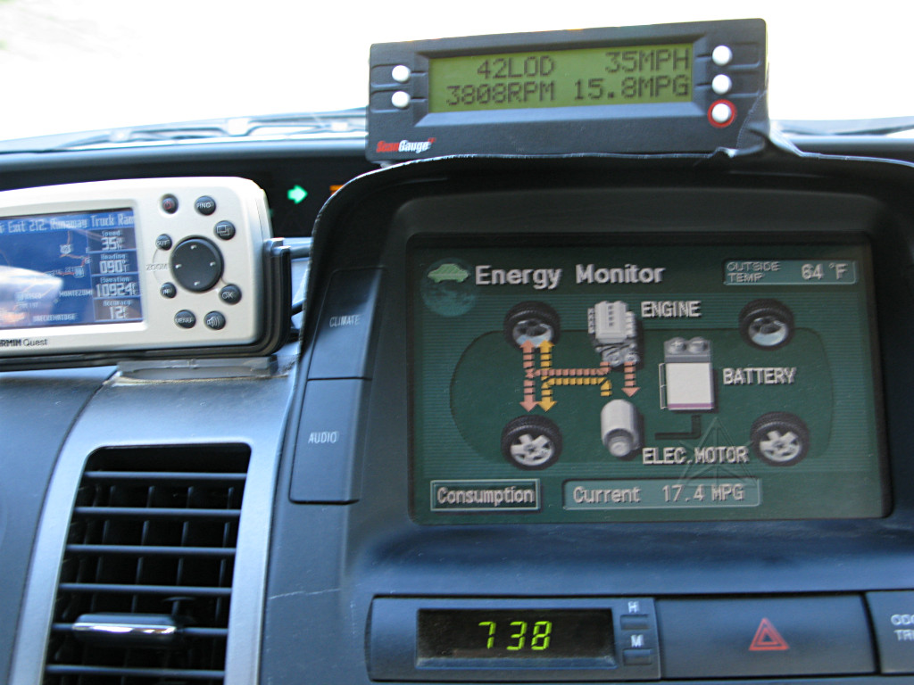 ... when my own '04 was at 4000 or more feet of altitude, I definitely noticed that the SOC stayed much lower than usual. I have no idea why, especially since the car has no barometric sensor in its control systems so how could it know? Nonetheless it would continue giving assist and only level out around 4 bars in the display rather than the normal 6. . When I went over Vail and Loveland passes in CO at 10,000 feet or so, the car used up *all* of the available battery -- I'm talking down to ONE bar in the display and still pushing arrows toward the wheels, even with modest demand at the pedal. Unless I ran the engine up to like 4000+ RPM, I couldn't climb particularly fast since that was the only power source left. I was content to just drop in behind a slow truck and wait it out through the gorgeous scenery, since I'm not one who subscribes to the school of thought where manhood is proven by how fast your smoke-belching Powerstroke blasts uphill with the boat in tow, but it was still somewhat puzzling why the car had gone out of its way to exhaust the battery so soon in the game. The only change was altitude, and things returned to the "new normal" 4 or 5 bars once back down to 5000 feet and then right back to 6 as I returned closer to sea level. No codes, no complaints, just a clearly changed target SOC during much of my westward wandering this summer. . The only guess I can make is with the engine having to pull in more air to match burning enough fuel to get requested power, and definitely keeping the throttle farther open as seen on my vacuum gauge, that enough of a mismatch existed between the power the hybrid system wanted and what it actually got from the engine that it felt it necessary to make more up from the battery. But that really should only be for transient situations, not steady- state on the highway where I also had the low SOC the whole time. . I asked about this on Prius_Technical_Stuff and other people at high altitudes reported NO changes from the normal six-bar 60% SOC level. Different year cars, though, I think, suggesting a possible change in ECU coding to handle this. I don't believe it had anything to do with the occasional tank of 85 octane I was getting in those areas, either. |