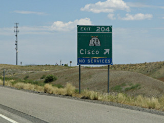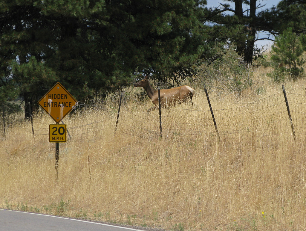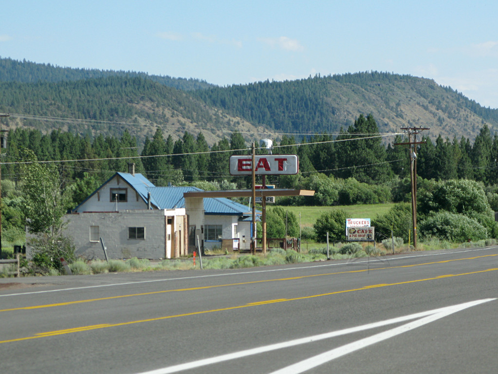At one point a trio of Harleys passed me, and about a hundred miles later, the same group passed me *again*. I caught up with them in Eureka later, the middle of the three notable towns along this whole stretch, and stopped for a quick break and got to chatting. They were headed to Sturgis, and decided to go via the more "adventurous" route and take in a lot of scenery. Obviously their fuel stops would be more frequent... They had a kid along with them, maybe 12, and a tiny dog that came with its own do-rag and leather vest and rode along just fine in a *chest pouch*. All three bikes were also laden to the hilt with camping gear, of course. I *wish* I'd gotten a picture of them and the dog because it was sooo cute, but I think we were all more intent on gittin' on down the road. There were actually quite a few missed photo opportunities of this sort -- either no time, wrong angle, infeasible to stop, too much of a time-sink to drive toward, or flat-out lameness. Sometimes I would substitute by just making a note for later. Trying to catch everything would have doubled the whole trip time and the number of "keeper" pictures, so I didn't mind having to draw the line *somewhere*. Besides, every picture has some amount of story behind it and quite often, that piece of story would already be forming in my mind *as* I went for the picture. That would affect how it was framed and focused, where it was shot from, whether I'd try to put the car in it or not, and if any additional "leadup" shots needed to be captured afterward to help round out the explanation. Again, the numeric filenames gives some hints about how some of this got mixed up and reordered. In other words, I spent a certain amount of time on the roadtrip in "journalist mode", thinking in terms of the final writeup even down to the wording. But plenty of shots were just spur-of-the-moment "hey that's neat" reactions. |