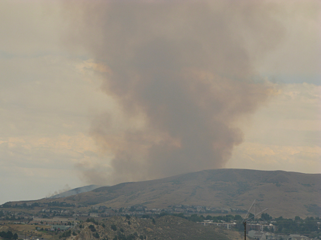 While the Denver area had already suffered several wildfires over that very dry summer, this turned out to be one of the larger ones and was all over the news later that afternoon. Here's another story. Apparently it had crept up the backside of Green Mountain and closely threatened several residences before it was brought under control. I guess my "source of RFI" shot was also one of the earliest distant pictures of the fire that morning, purely by chance. |