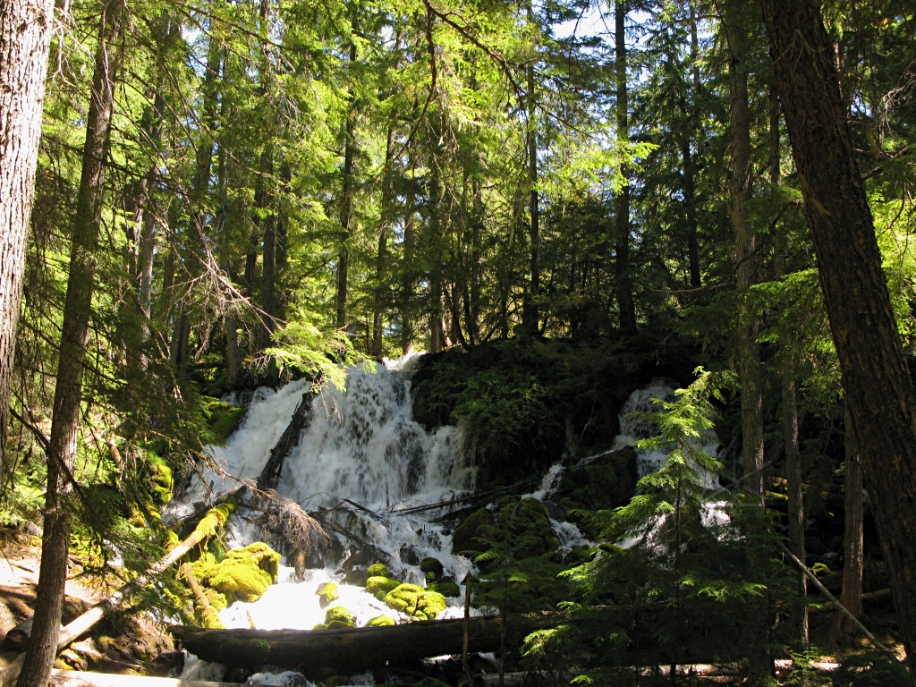 But as I went on I realized that with so many little offshoots and so little passing traffic, there was no way anyone was going to go poking far enough up each and every one of them and check for interlopers. I had no other choice at this point, and used the last bit of remaining daylight to pick my way far enough up one of these paths to be out of sight from the road, tucked the car in behind some bushes to hide retroreflections and be clear of the path in case a log truck *did* want to come past here in the morning, and called it my home for the night. I still had food in the cooler, so I was all set. |