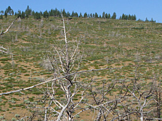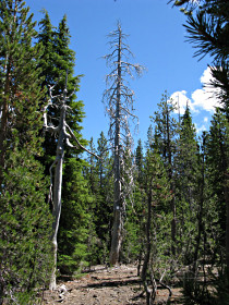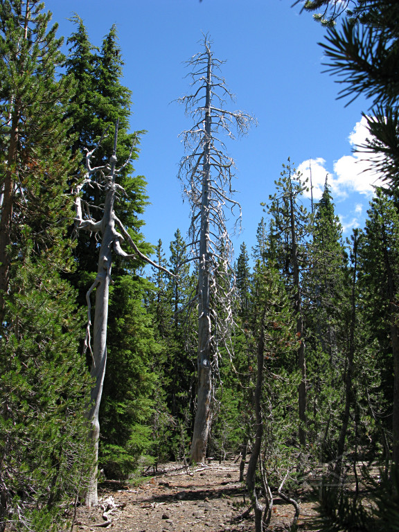Salted in amongst the live trees, these funky scraggly dead pines are everywhere. Most of the trees around here are a variety called, appropriately enough, whitebark pines. |