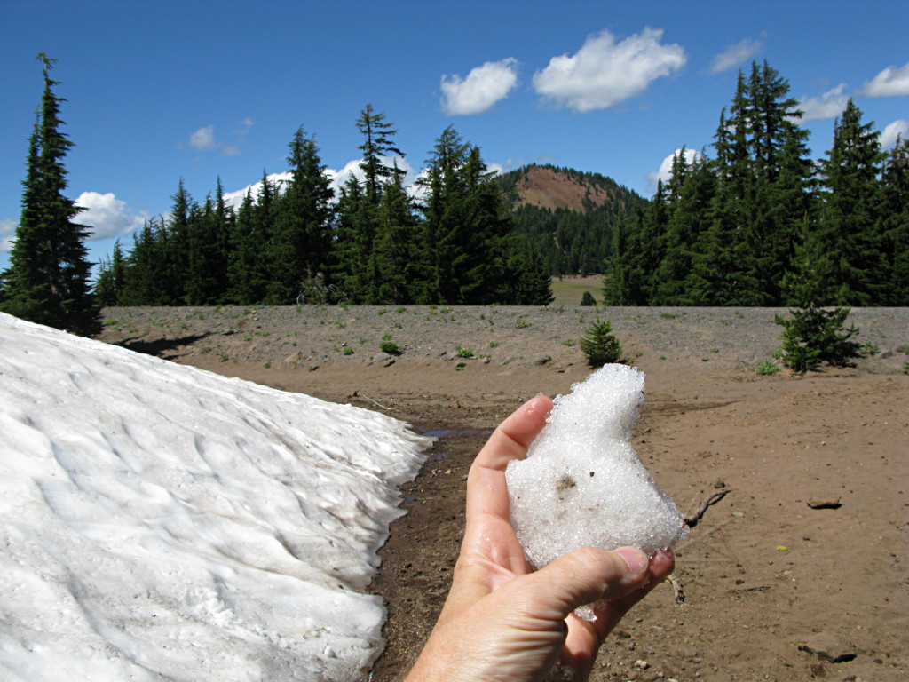 I found big *snow* mounds. In August. I had to stop and play with it. |