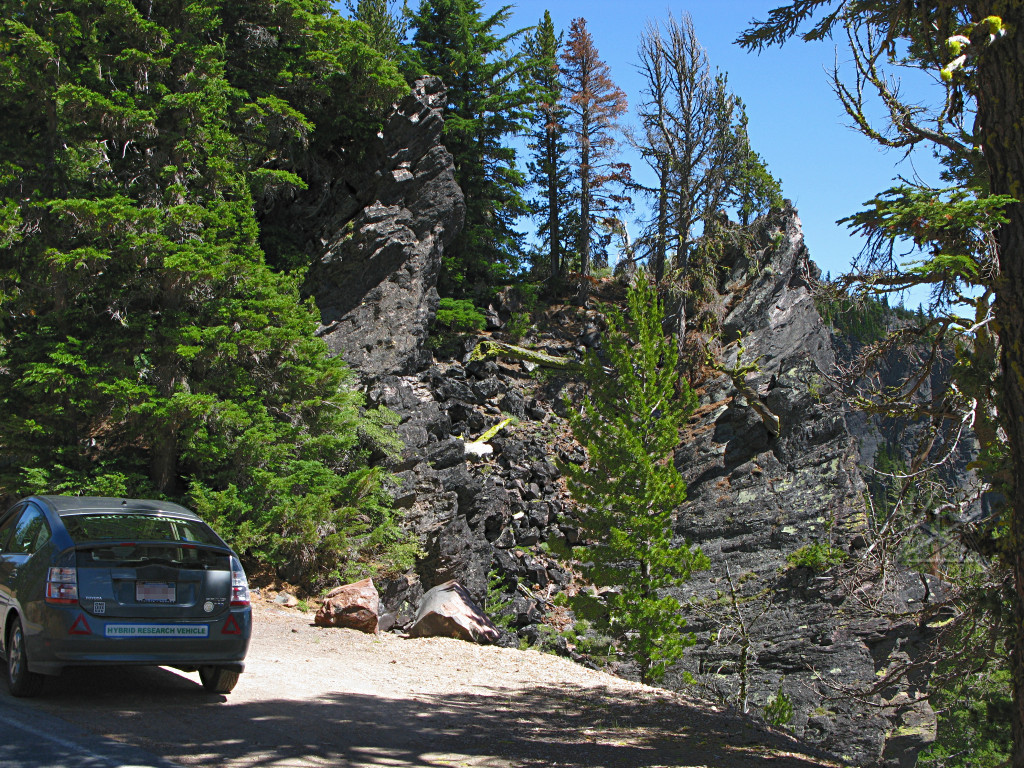 Signs kept pointing off exits saying "volcanic legacy" and "see the lava flows!", but I think I could see them pretty plainly from the road right here without stopping. |