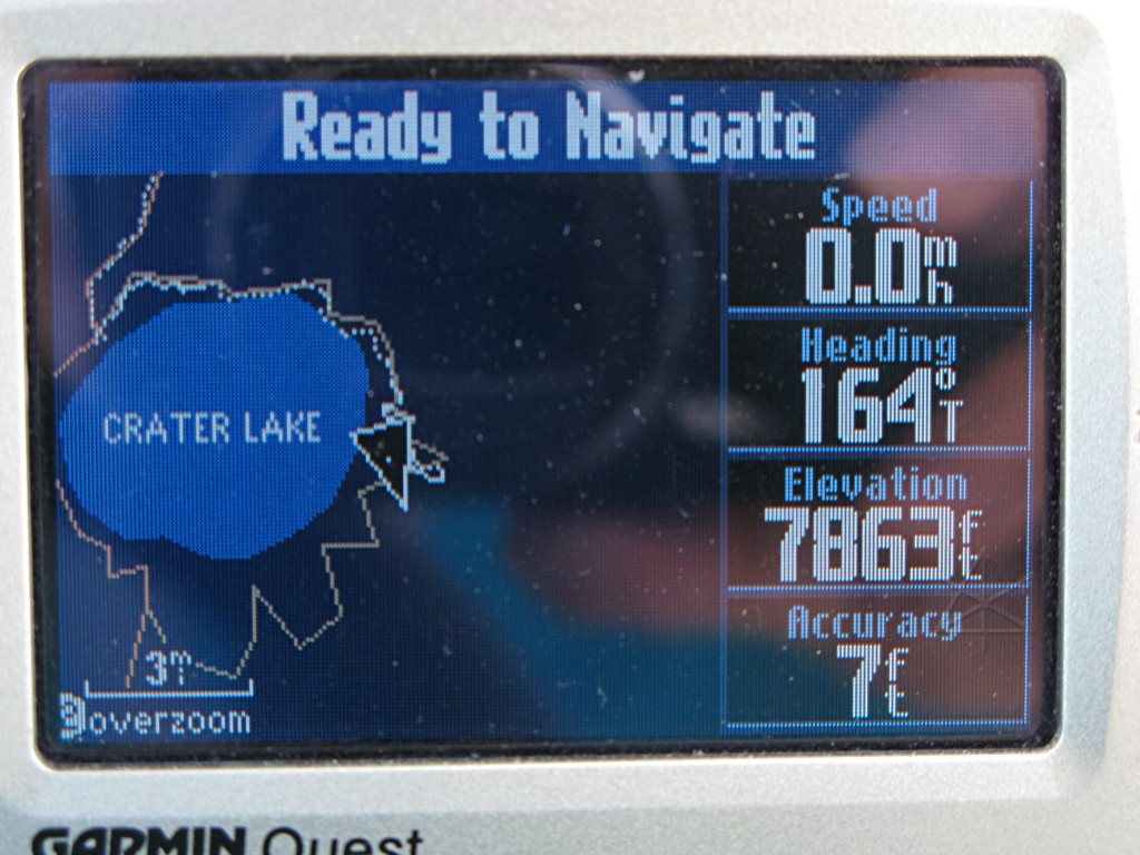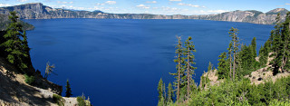 Wow. It's very ... blue. It's also fairly large as is the scale of things around it; note how far down the knob of rock at the bottom is, and the water is a ways below that. For some reason I thought the lake would have a smaller diameter. |