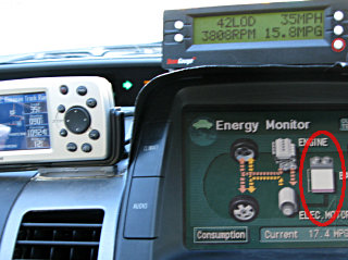 Apparently backups of this magnitude are *normal* for a Sunday night as numerous people return from their weekend recreational trips into the mountains, so I just happened to land in it at the worst possible time. I can identify with this, because back east we often get a similar mess on I-93 south coming toward Boston from the White Mountains. I was also low on gas but none of the stations in town had any regular -- because their deliveries usually arrive Sunday evening, but none of the fuel trucks could get to them through the backup! I decided to just wait for the next day. But the important thing was that I finally had a real shower and a place to relax, with an internet hookup and no insane truckers chasing me! I updated the running forum thread and caught up on mail and some contacts, and turned in fairly early. The next morning I had a nice chat with the 40-year industry veteran doing dispatch at R. Sam Cox and asked if he had received any info about incidents involving the Utah highway patrol, and that piqued his curiosity ... I described the whole horror story with the horses and he was all over apologetic about what happened. "That driver should never have done that," he agreed; "that's just bullshit" and by that he didn't mean I was pulling his chain about the incident, he was genuinely concerned about his company's professional image to the public. Case closed, I thought. By the time I got myself coffeed and checked out the gas stations finally had their regular again, and I was soon all set for the next phase of the adventure. I basically had the morning to kill before hooking up with my first contact in the Denver area, so I could be a bit leisurely. I spent a little while in the motel parking lot fooling with some more Xgauge setups on the Scangauge, including one that passively reads hybrid battery voltage very fast off the CANbus. It's interesting to watch that go up and down, which it does over a fairly large range. The nominal "201.6" volt battery is rarely at that level; real life no-load voltage is more like 225 and under various charge and discharge conditions can go as high as 260 or down to 190 or less. No wonder most state-of-charge calculations are based on coulomb-counting via the current sensor and integrating over time -- trying to determine anything from pack voltage alone would be futile, especially if there's a possible ambient-pressure dependency going on. |