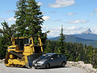 But it wasn't just Vail itself, as the mashup continued past the town and into the serious climb up Vail Pass beyond it. Here's where things started to get really weird. I went into my usual 3000-RPM climbing mode and watched in some amazement as the car sucked what little remained in the battery completely dry -- down to one bar and still pushing current TO the drivetrain. Basically that left me on the engine alone, which at the unusual [for me] levels of horsepower I was now asking of it would lift the weight of the car at a comparatively anemic rate. |