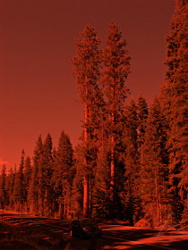 Just kidding. And these big guys are mostly likely Ponderosa pines, not redwoods, even though the bark does have a fairly strong reddish tinge. |