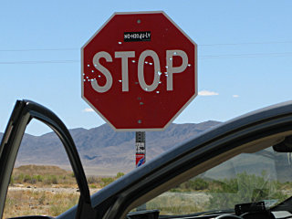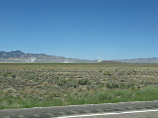And once again, lost in the middle of freakin' nowhere! I pulled off a little onto a side road to go have a closer look at the land, mostly barren, sandy dirt without much on it except a little scrub. At this point I was about a hundred miles south of where Burning Man takes place, and while it had been tempting to detour up there to see the Black Rock area, I think even here I'd already seen enough sun-baked playa for one summer thankyouverymuch and I wouldn't have time anyway. Interesting Big Art aside, they can have it. |