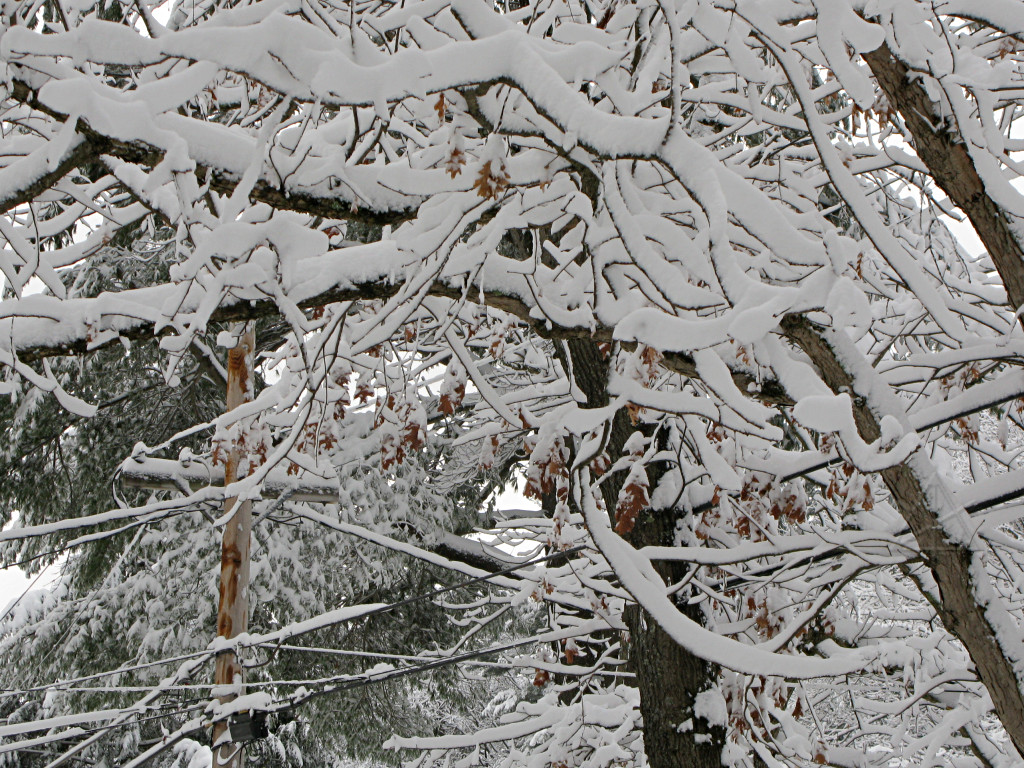 | Here we can see how the snow not only stuck to every tiny twig, it didn't just pile up vertically but actually *expanded* as it built up. |