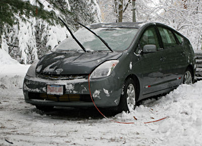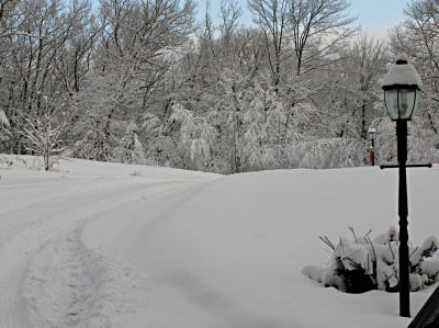 | These folks didn't bother shoveling their driveway, preferring to just blast through it with their SUV. Once this gets rained on and refreezes, they'll probably regret not doing the work. |