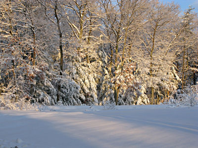 | A little later I set aside working on Arisia stuff and went outside. The temp was just around freezing and apparently the snow was being very clingy as a result, piling up on everything with no wind to knock it off. |