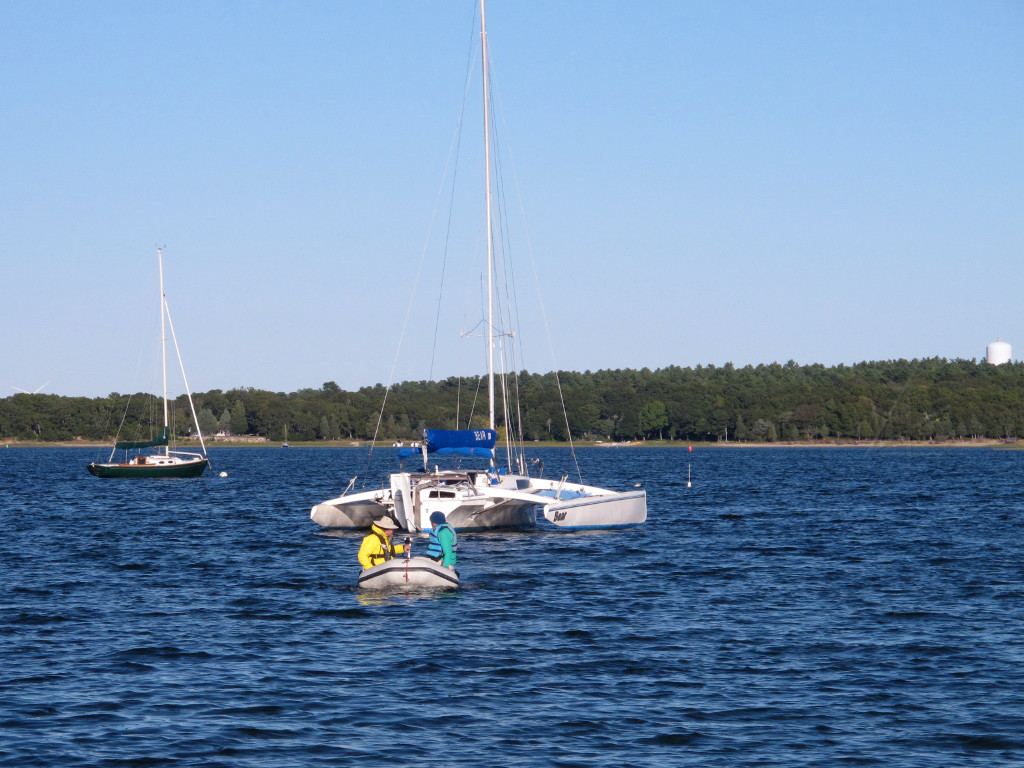 Looking back at Bear on the final dinghy run to shore. She looks like some sort of weird aircraft from either end... |