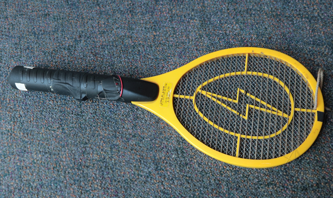 The "tennis racket" zapper produces more than 1000 volts across