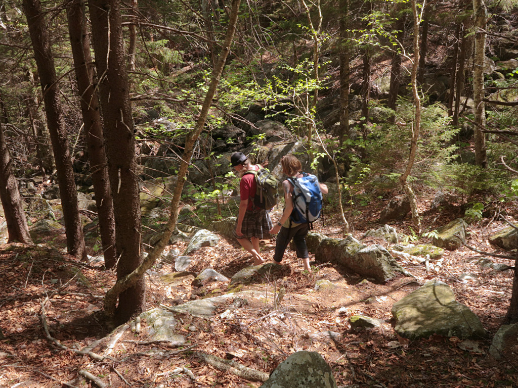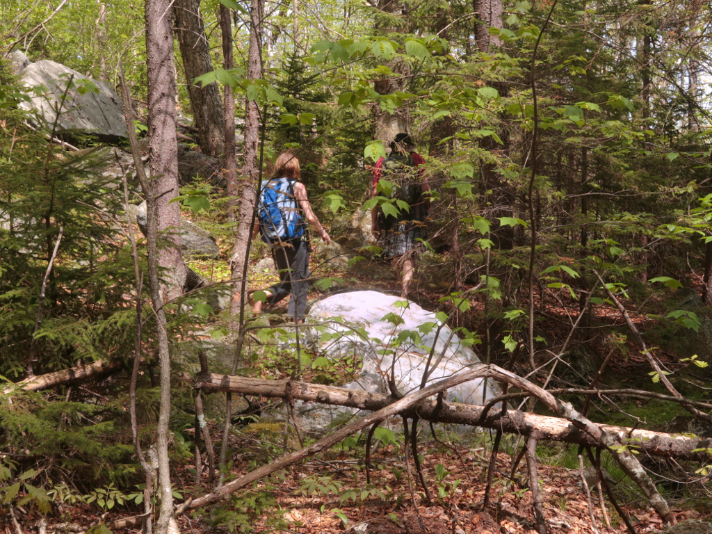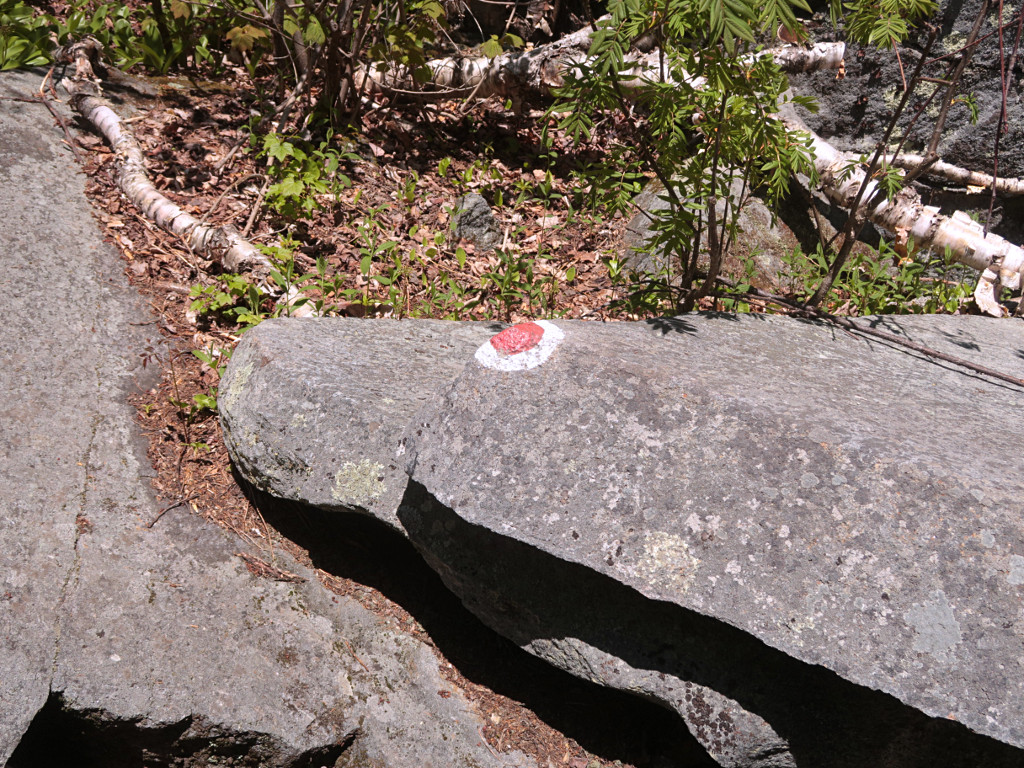 We were on my suggested choice of Red Spot, another of the trails up the northeast flank to the Pumpelly Ridge. Fairly generous blazes helped keep us on the trail through the open sections. |