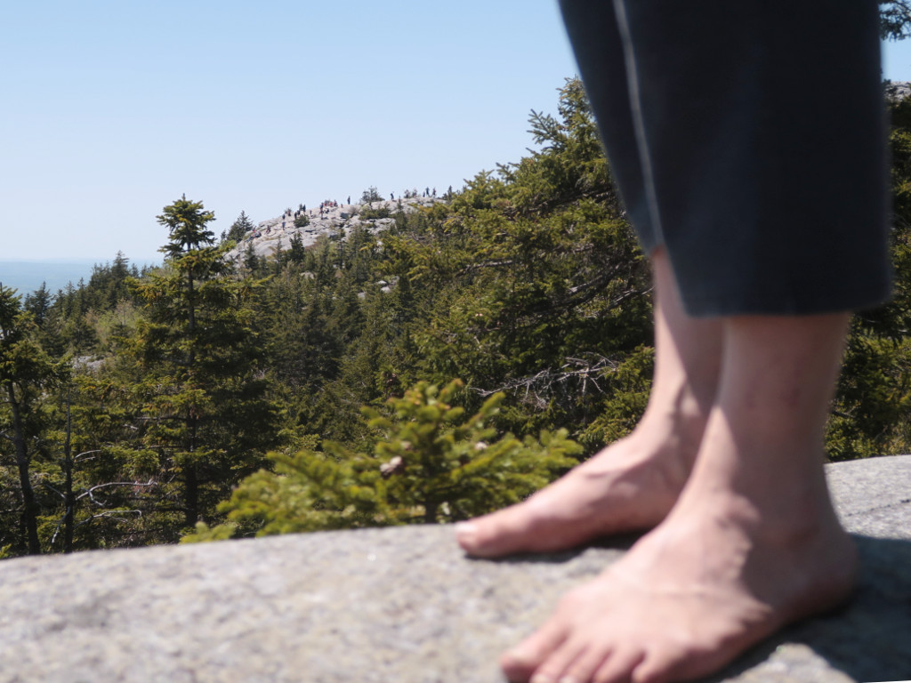 At a lower level of big flat slabs, it was the perfect place for a "timed selfie" of the whole group and a traveling feet shot by another of our party. |