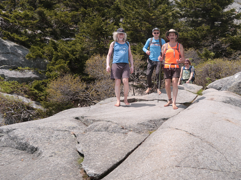 We were totally having fun with the amazing grip of bare soles on the steep slabs. |