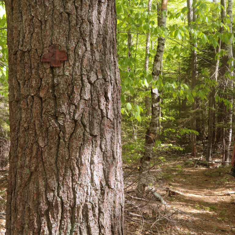 | We were on the remains of the Red Cross, with rusted steel blazes still stuck on a few trees here and there. This is certainly not the only obscure or "secret" spot on Monadnock; this blog thread hints about many more. | |