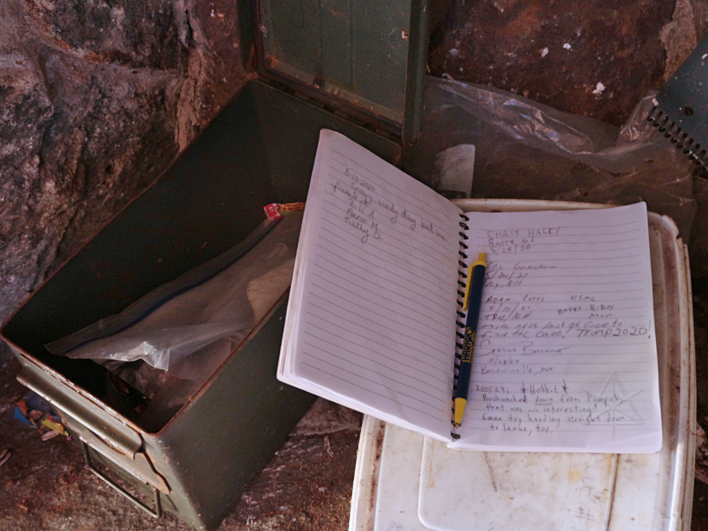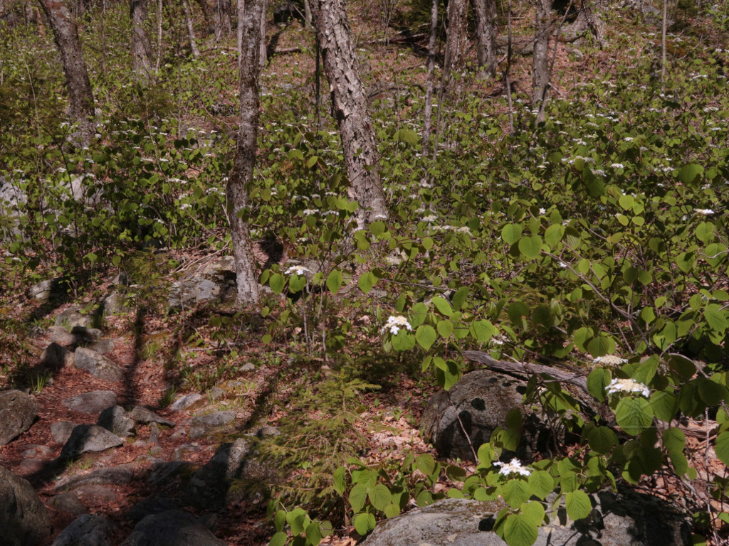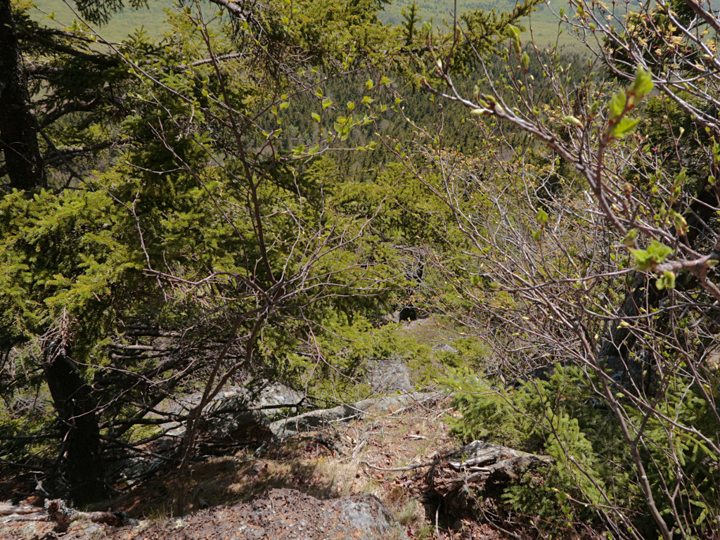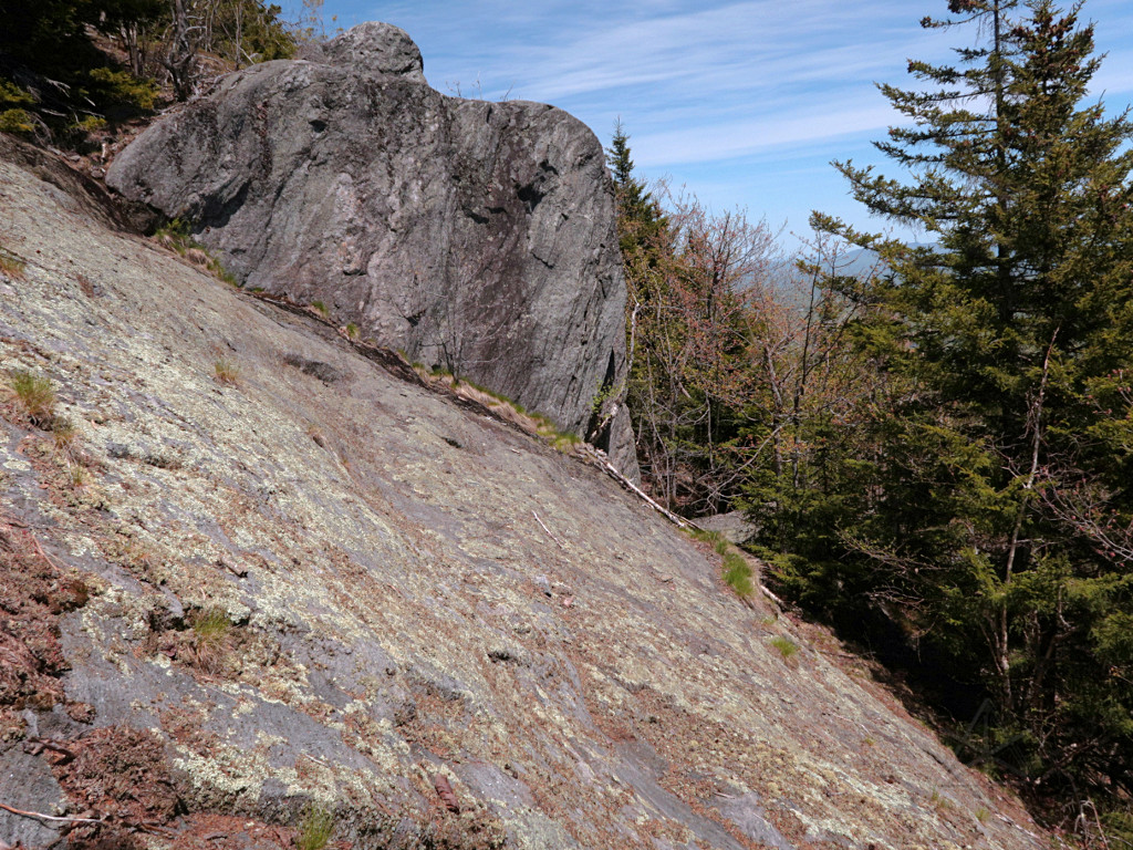 | Given that I was on my own and up for adventure at my own pace, my primary target for the day wasn't really the summit. Rather, I wanted to go find the storied "Pumpelly Cave". There are basically no trails to it, documented or otherwise, it hides somewhere in an area of dense woods on one of the steeper slopes of the mountain. I was up for a bit of bushwhacking, and had most of the day still ahead. |