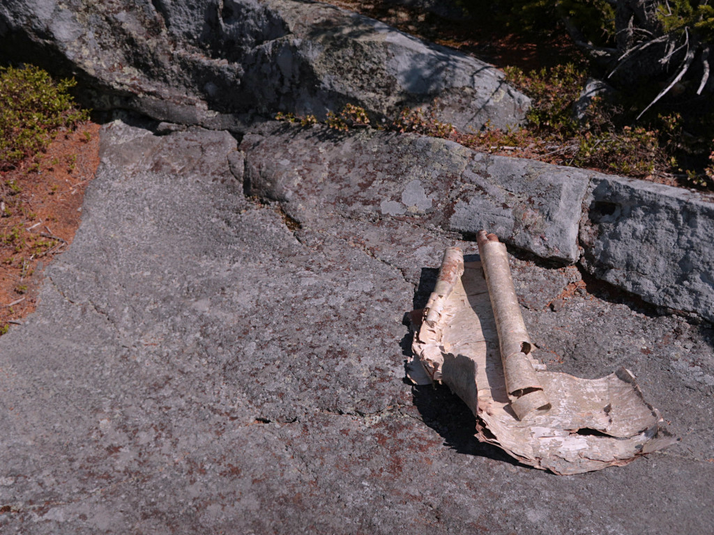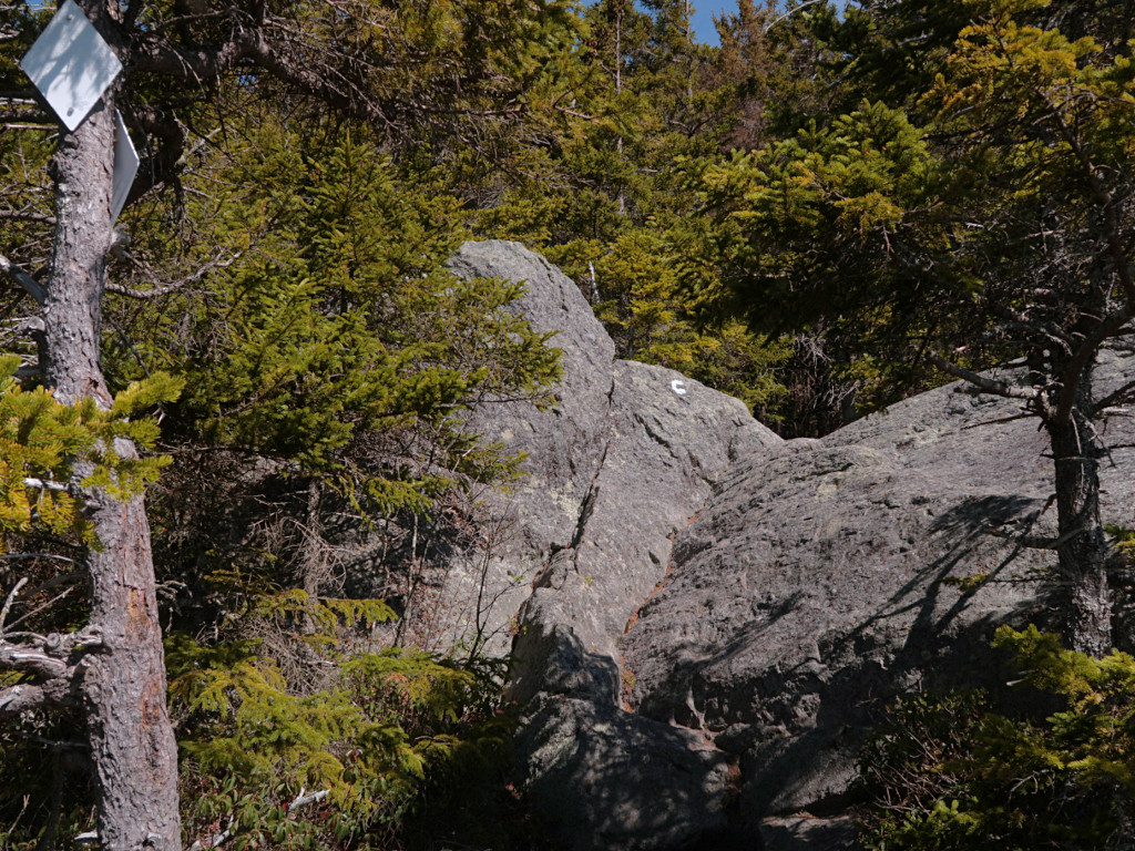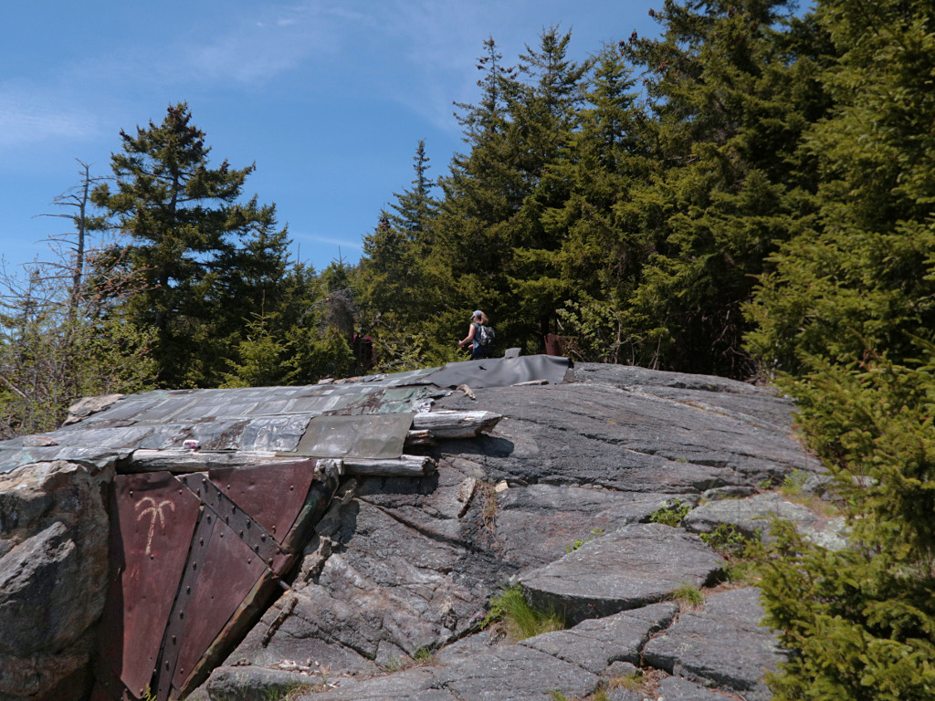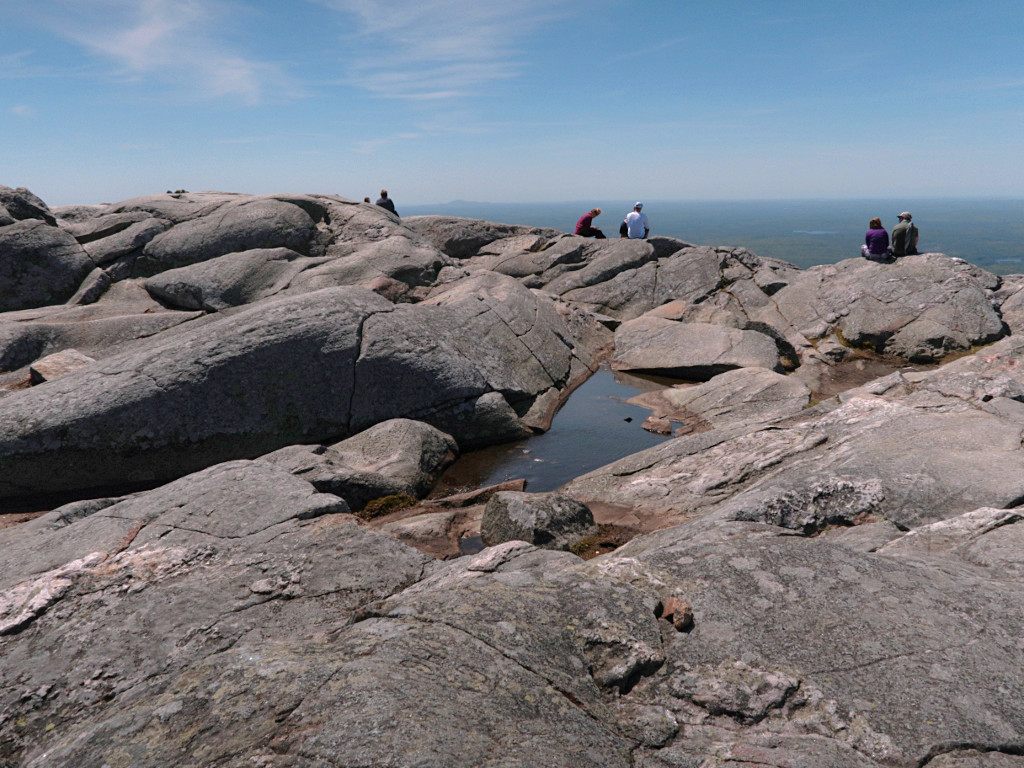 This is supposed to be Bald Rock, so I'm not sure what this chiseling is trying to tell us. Nice view of the Pack Monadnocks to the east. |