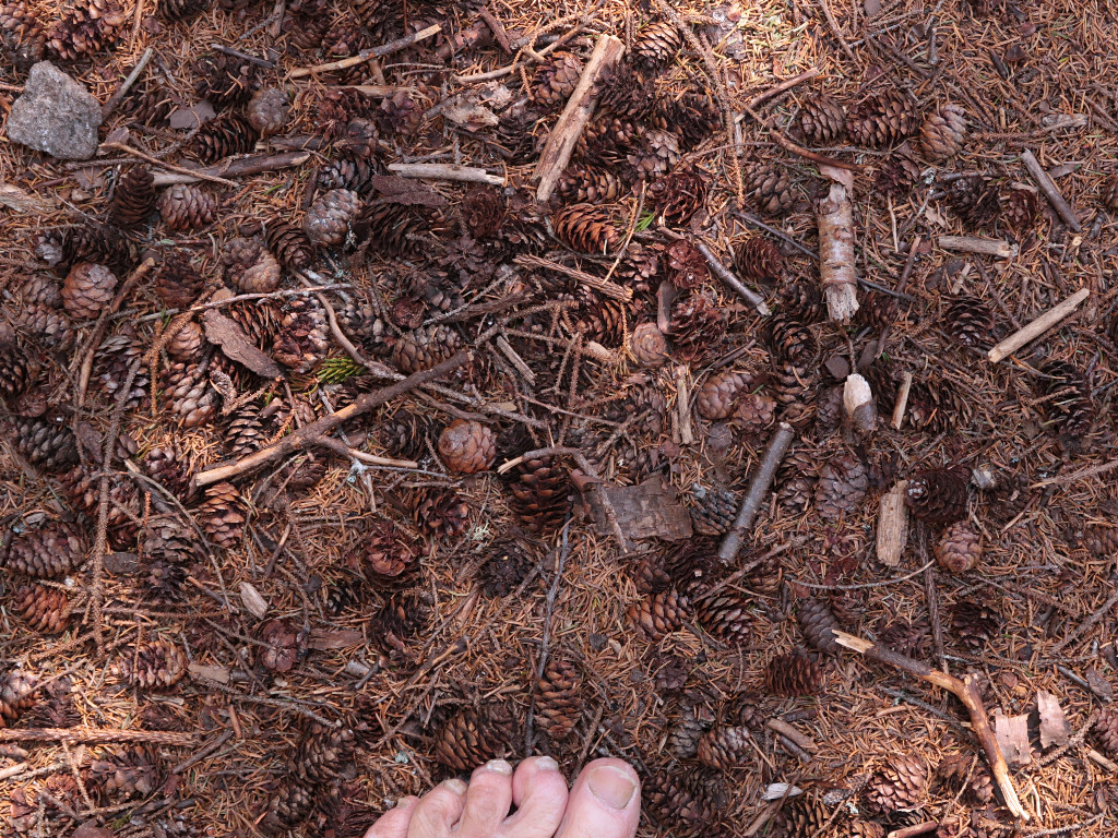 The flat boulders are almost like a concrete sidewalk through the scrub, but actually feel much nicer than concrete. Again, something about the granite up here is just so foot-friendly. |