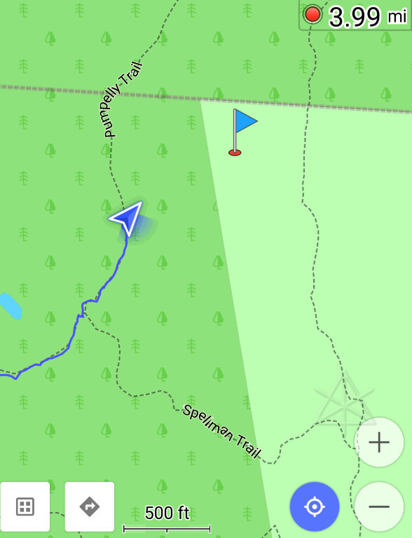 Tag! Very un-like last year, when we had a whole circle of feet around one of the survey markers. I gave it the token brief touch to note the moment, and then got the hell out of Dodge heading toward Pumpelly trail. |