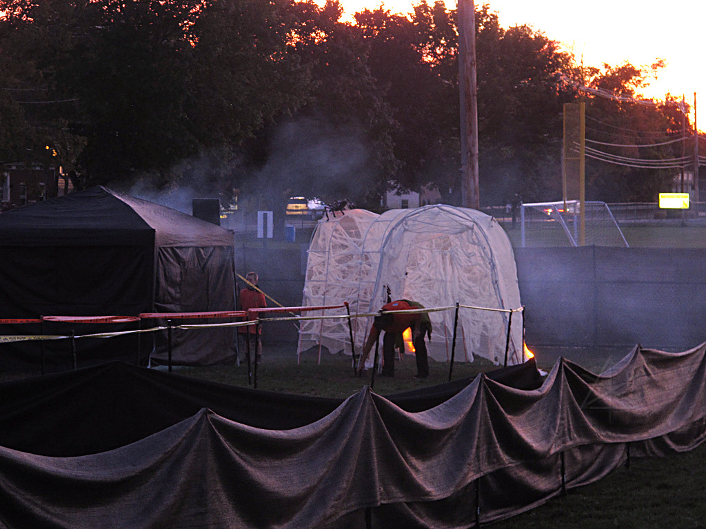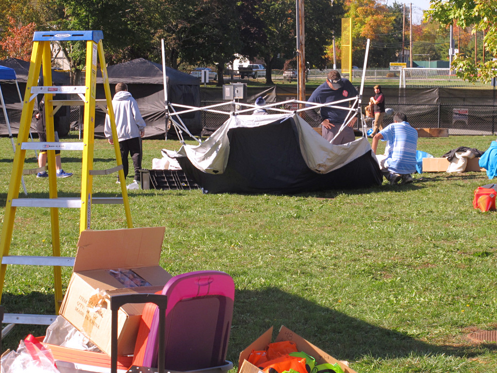 Even as the event officially started, there were still things to get done -- bringing another inflatable upright, firing up any generators that weren't running yet, and lots of quick cleanup. |