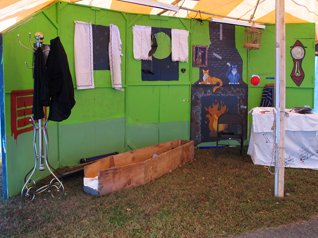 A drape of cloth on one side of the enclosure blocked the guests' view