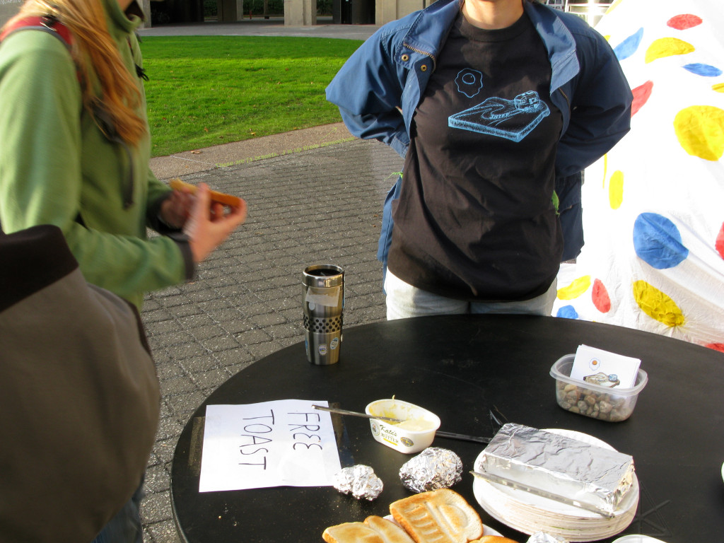 Unfortunately there wasn't much other press presence, but then again the general Boston/Cambridge community almost seems inured to MIT hacks by now. In fact, the tie-dyed shirt worn by the guy at the table here is from the famous Fleming cannon hack that appeared in this same courtyard back in 2006.  |