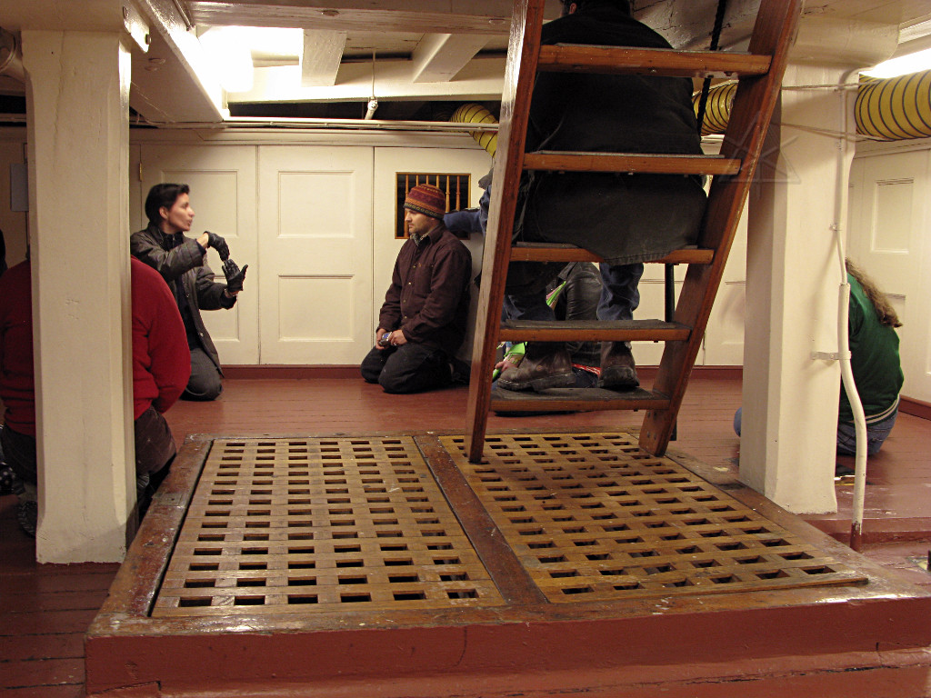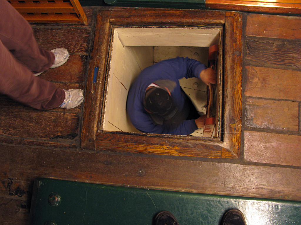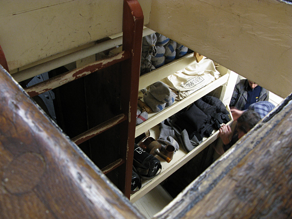 Down the hatch! This tiny passage leads down to the aft powder magazine. |
