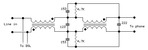 It's pretty much the opposite of a common-mode choke -- the coil winding polarities are opposed, because in this case we want to squash passage of the *differential* signal above a certain bandwidth but let the DC and low-frequency voice components on top of that through to the phone. 2Wire, by the way, is apparently one of the major players in DSL hardware and standards.