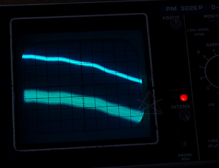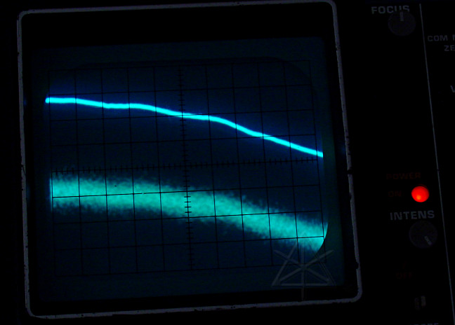 Now, from here on the bottom trace is the unfiltered line and the top trace is post-filter.