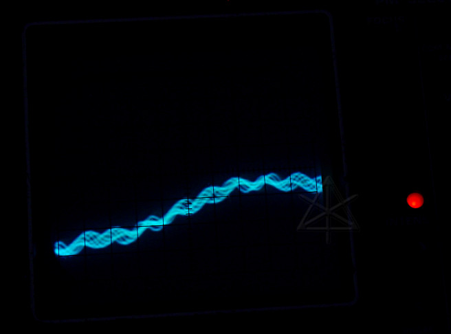 Off-hook, and holding down the "7" key to send a touch-tone pair. The other trace flew off the screen due to voltage drop -- that's okay, we're just looking for an audio amplitude ballpark.