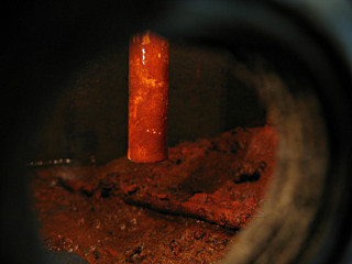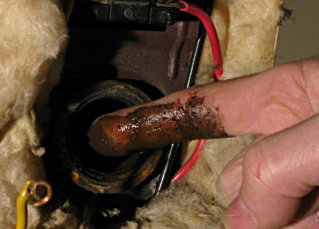 | A quick swab around the inside of the hole with a finger returned this. Blech! The water coming out of this thing was supposedly *potable*?! |