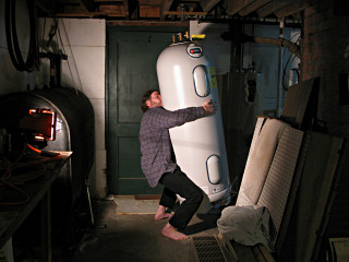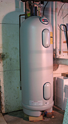 Someone on the mailing list mentioned the Rheem "Marathon" heater, and while digging around I ran across several references myself anyway. In stark contrast to everything else, these carry a *lifetime* guarantee on the tank for the originally-purchasing homeowner. The difference is a plastic tank which can't corrode -- seems like no-brainer technology, given the number of plastic tanks used in all kinds of other applications including containment of nasty chemicals. But no other manufacturers [including Rheem's own regular product line] seemed to offer something like this. About three seconds of math showed that even with the higher initial cost of such a unit, it would be more longterm cost-effective than doing the periodic replacement dance, so I decided that's what I was after. Next question was where to get one. The Big Box stores were hopeless, and most of the plumbers I was calling had never even heard of it. I did finally find a local contractor who dealt with them, but their lead time for ordering one was over a week. A couple of others pooh-poohed the idea, trying to tell me "aah, nobody buys those things". Which is complete bullshit -- these heaters are evidently really big in the midwest, and Rheem is only just starting to push them toward the northeast market. Anyway, the plumbing outfit that could get them quoted me $1300 for the whole deal, installed. For a $650 price on a 40-gallon unit, they were clearly out to make a huge profit on a couple of simple connections -- and that didn't include the electrician they claimed that I would need too. Bah. That made me think a little harder about just doing the installation myself, including the pipefitting. I understand soldering and can work on electronics and wiring just fine, and had even played around with sweating up some sample copper pipe joints a while back just to try it out -- but not on any live water-carrying lines. I even already had the requisite torches, tubing cutters, lead-free solder and flux, etc from that previous but not well-pursued impulse to finally sit down and learn how to do this stuff. Still, I didn't trust myself to be able to do it properly and then have it remain leakproof under utility water pressure. Meanwhile, a reference on Marathon's own "where to buy" webpage pointed at a somewhat peculiar place covering Massachusetts: Princeton Municipal Light. A regional power company out in the boonies. But it made sense -- these heaters are not only durable, they're super-insulated and very efficient, and power companies often rise above the profit motive and try to encourage customers to buy efficient appliances or at least wrap blankies around their old water heaters. So *they* had an assortment of Marathons IN STOCK in their back garage and even though I'm not one of their customers were perfectly willing to sell me one. I checked the dimensions on the target unit and realized that it would fit just fine in the Prius. I called the profiteering plumbers back and told them about this, asking if I delivered the heater from this alternate source could they still install it? After some "talk to the boss" hemming and hawing they said yes, so I told them I'd go ahead and get the unit and then call when the work needed done. I already had a sneaking suspicion that I was never going to call them again. |