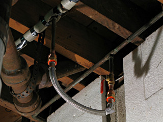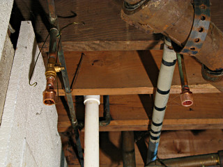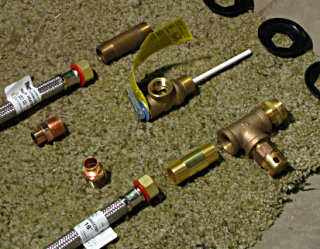 | All this research was gradually increasing my confidence about what needed to be done to install this thing, and around this point I decided that dammit, I was going to at least *attempt* the installation myself and call the pros if I got into trouble. Like the Lowes Hardware DIY webpage says, "no reason not to". It was high time I quit being such a wuss about it -- two lousy connections, and I should just dig in and learn already. As noted I had most of the tools, and I'd just need a few more fittings to interface all this to the house. |