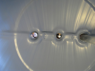 | Both elements out. Also visible is the drain tap and some of the rather uneven concrete pad area underneath. |