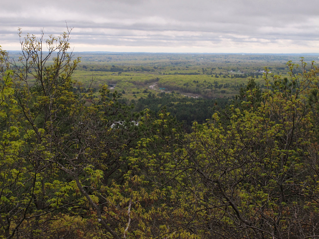 After getting back to the tower and taking the obligatory gaze around the vista from the top, I detoured over to the weather station to see the radar progress of the oncoming unseasonably "anomalous" nor-easter that was headed our way that day. It was a slow front, still roiling along somewhere in Connecticut, and despite the overcast the air here was still dry enough to afford a very clear view to the horizon. I think one of the station's staffers recognized me from a prior visit with a friend a few months back and said hello; they've got no problem with feet over there and had even expressed some fairly earnest curiosity about our choice of hiking footwear. |