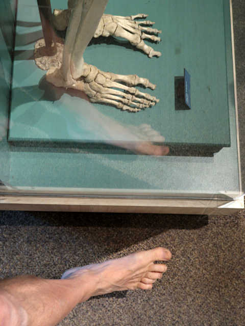 From: *Hobbit* Heh, well, they *do* have a human skeleton, which was my comparison shot. Next to that in the same case is an orangutan or something, in the room with the "diversity of evolution" displays and such... I really appreciate when an organization makes no bones, so to speak, about just how *old* everything is. Natural history museums, the National Park Service, etc ... none of this shortsighted view of only a few thousand years nonsense that pervades so much of human culture. On a big wall chart of hominid evolution, I realized that we've been wearing shoes over about the thickness of one dot of the ink at the end of the long bargraph...