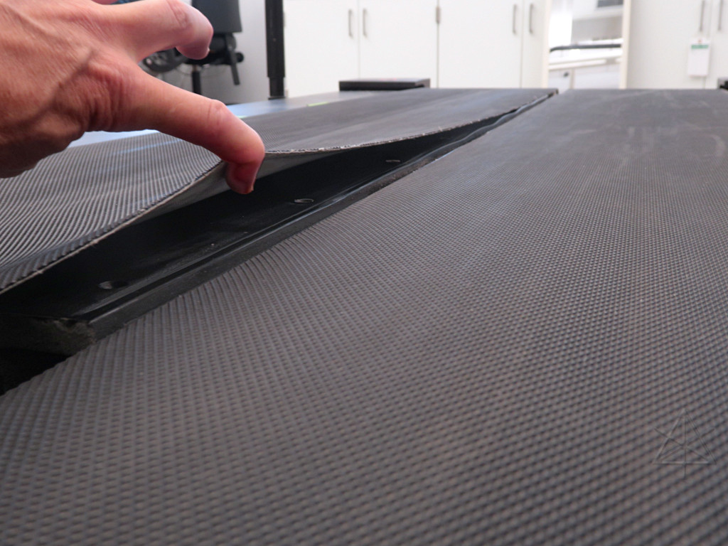 I couldn't really peek in far enough to see the actual sensors. This particular treadmill is not quite an early prototype from the company that built it, but only one or two steps past that toward development of their actual product line. |