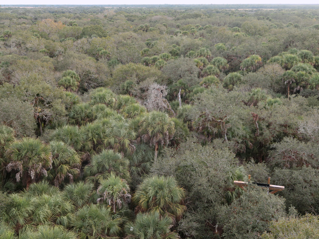 "Wooded" here is mostly a mix of live-oak and saw palmetto, with some