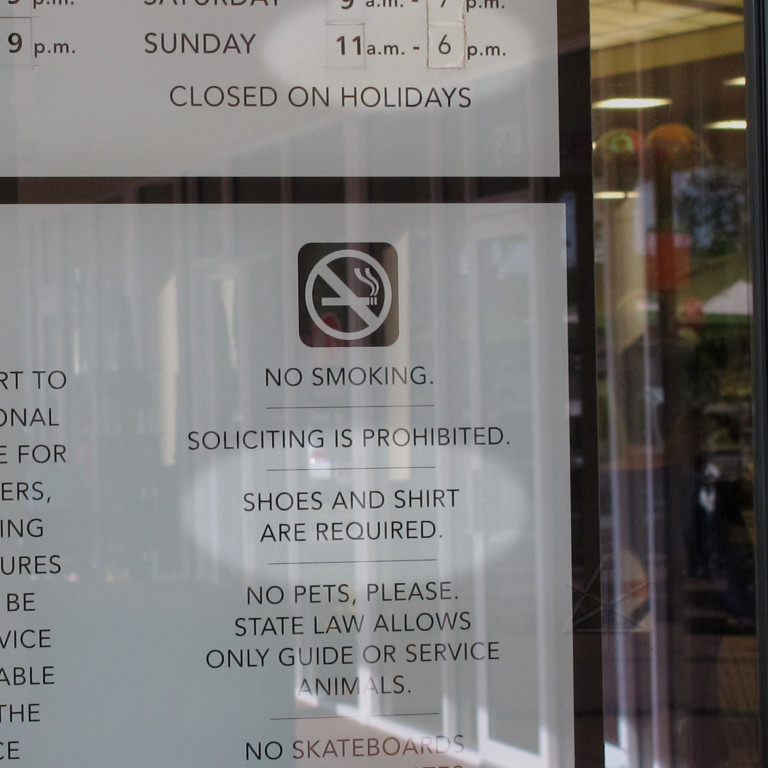 adhesive sign behind the glass of every location's entrance.