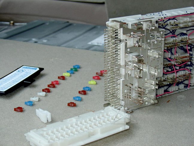 after which the fuse holder shell drops off, leaving all the contacts. Now