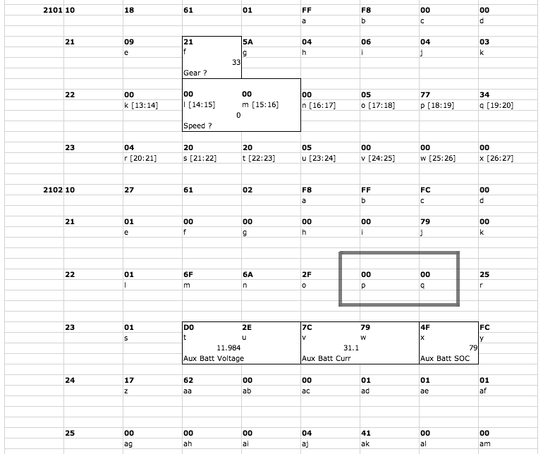 There's a Github user called JejuSoul who participates in quite a bit of investigation into Hyundai and Kia automotive data networks. He/she[?] is referenced in several places in these pages, because with modern cars already being so self-instrumented these days it's often easier to just utilize data from existing sensors rather than installing our own. But the right information doesn't come easy, and is often missing or incorrect if the relevant research hasn't been done and publicized yet. A certain amount of reverse-engineering and guesswork is needed, to determine the right diagnostic PIDs to ask for and what to pick out of the answers. Jeju maintains an interim research spreadsheet showing various known or suspected parameters from OBD2 queries, and once we understand the general methodology for reverse-engineering these we can try to take the knowledge further. |
