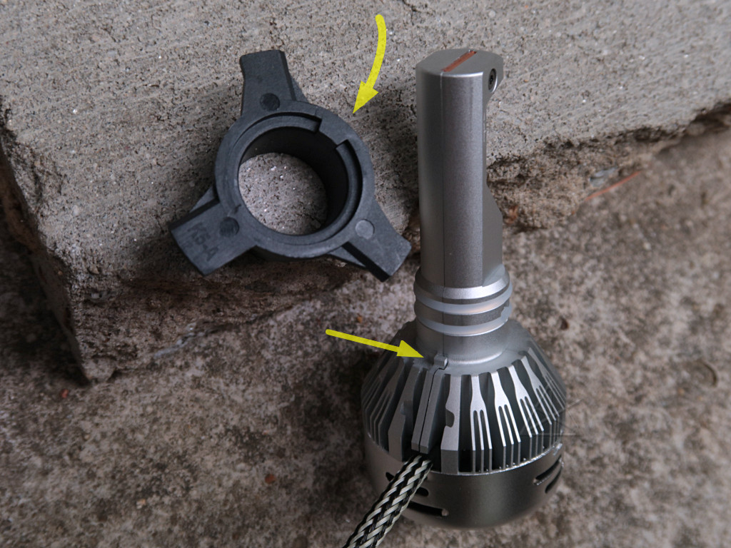 One type seemed to come out near the top, and was also favorably described in the Kona forums -- a supposedly plug-n-play offering from LASFIT. I decided to take a plunge and give this one a try. A nicely packaged pair of modules arrived from Amazon a few days later. They clearly incorporated the two major design hallmarks emphasized by the Headlight Revolution folks -- fairly small emitter areas in the right position, and fan-cooled. |